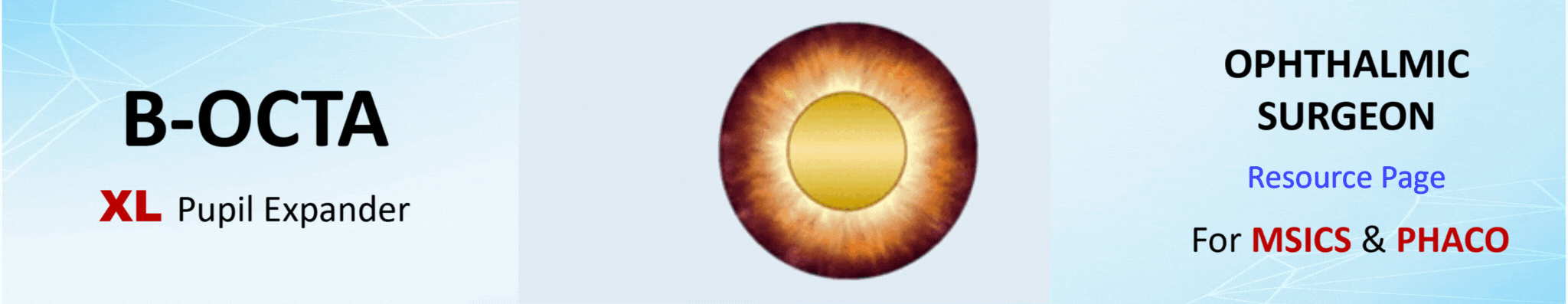 The ‘B-OCTA Pupil Expander’ provides an Extra Large (XL) pupil expansion for a wider view during Manual Small Incision Cataract Surgery (MSICS) and